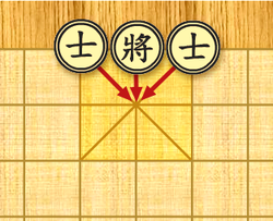 The traditional XiangQi board is a grid of ten horizontal lines and nine vertical lines. The vertical lines are interrupted in the middle, so that the board appears as two grids of five horizontal lines by nine vertical lines. This interruption is called the river. It serves as a barrier to the Elephants. Other pieces can pass over it as though it's not there, Pawns gaining the ability to move sideways after crossing it. The board appears very similar to other uncheckered boards, such as the boards Shogi and Chaturanga are played on, but instead of going in the space demarcated by the lines, pieces go on the intersections. These intersections are called points. Two palaces are positioned at opposite sides of the board. Each is distinguished by an x-shaped cross connecting its four corner points. Throughout the game, each player's General and Advisors must remain in the palace.